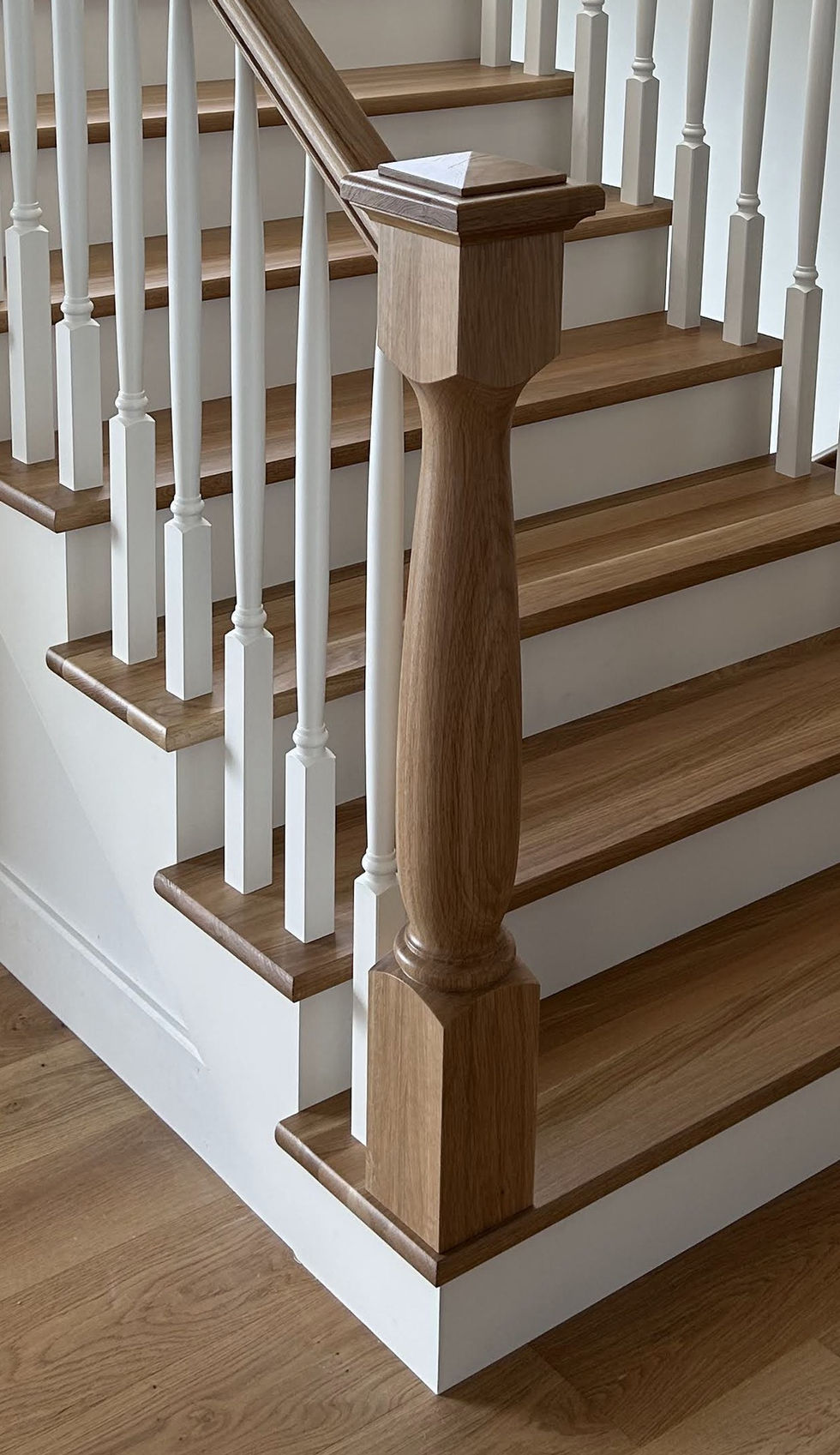 Des poteaux tournés au charme classique, ajoutant caractère et raffinement à votre escalier.